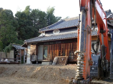 川西駅まで歩き。古民家が解体されてました。