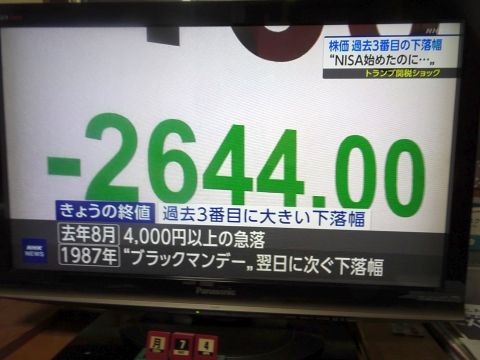 結局、日経平均2600円以上の暴落。