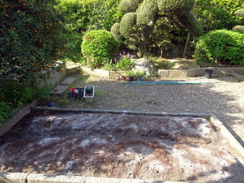 親父が耕した後に石灰を撒いた。