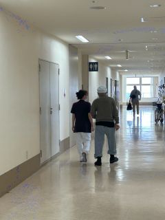 ひとりで歩いてトイレに行こうとして看護師さんに怒られてます。