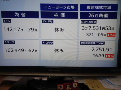 昨日の株価。