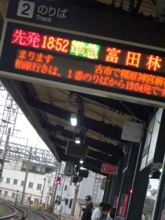 18:52の電車、19:08のバス。