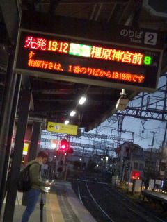 19:12の電車、19:28のバス。
