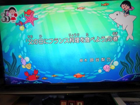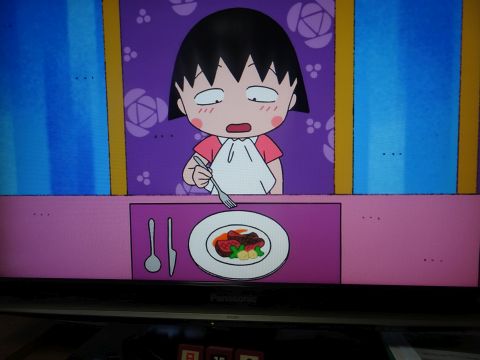 まるちゃん見ながら家ごはん。