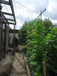 ゴーヤのネットを上にも足した。