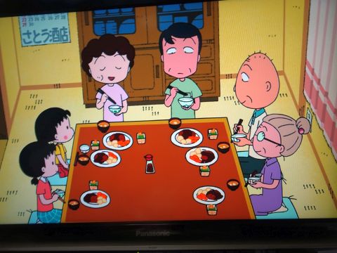 まるちゃん見ながら家ごはん。