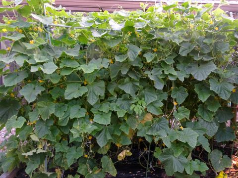 家庭菜園の様子。きゅうりを収穫。
