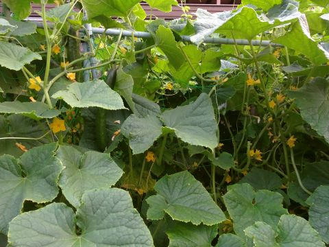 きゅうりの花がドンドン咲いてます。