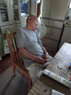 今日も暑い!親父がイスでこの態勢で寝てると心配。