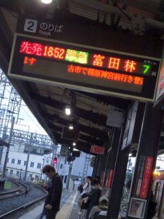 18:52の電車、19:08のバス。