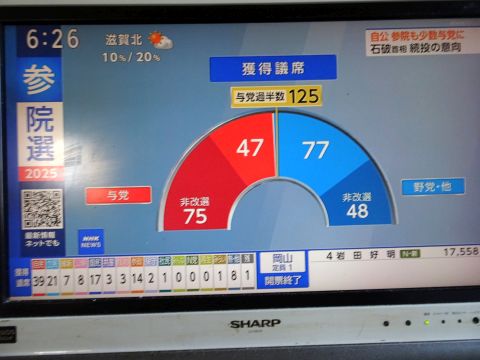 参院選、自公は過半数維持出来ませんでした。