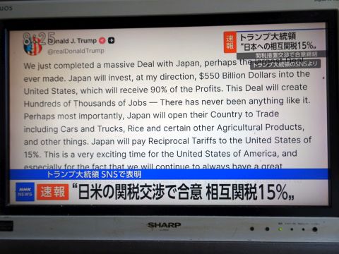 トランプ関税は15%らしい。発表したら株価が急上昇。