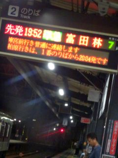 19:52の電車、20:08のバス。