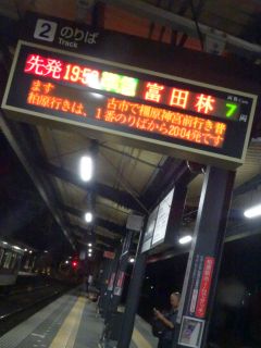 19:52の電車、20:08のバス。