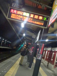 18:52の電車、19:08のバス。