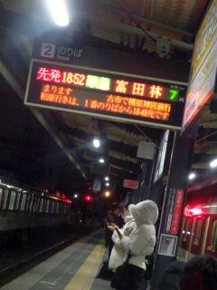 18:52の電車、19:08のバス。