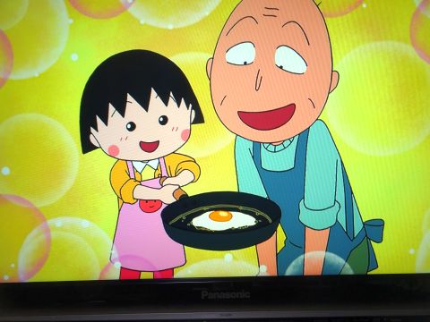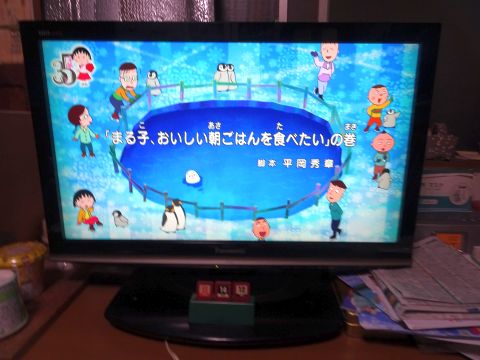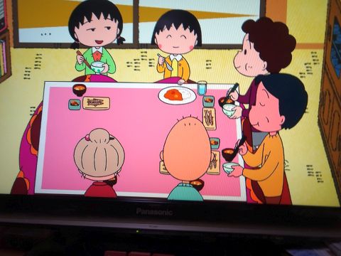 まるちゃん見ながら家ごはん。