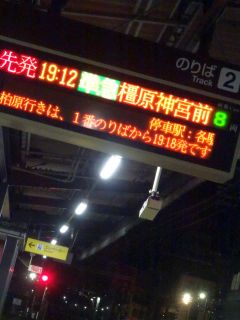 19:12の電車、19:28のバス。