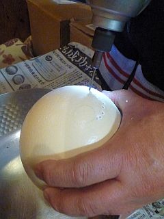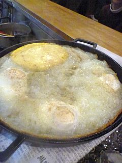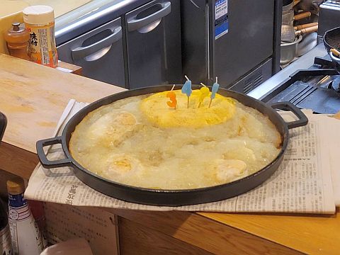 なぜかダチョウの卵の目玉焼きで坂井さんの誕生日を祝ってました。