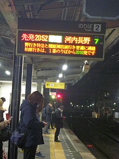 20:52の電車、21.08のバス。