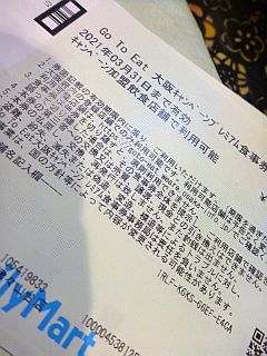 1年前のGo To Eatの券を使わせてもらいました(^^♪