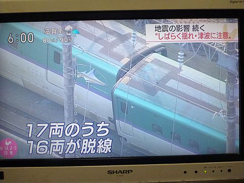 昨日の地震の余波・新幹線はしばらく運休のようです。