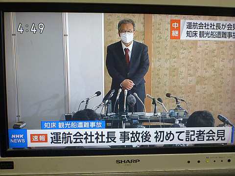 ウトロの知床遊覧船の社長が記者会見。