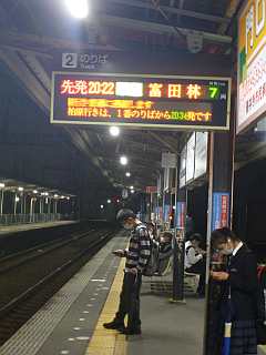 20:22の電車。20:38のバス。