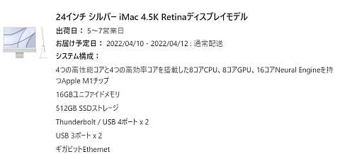 24インチ シルバー iMac 4.5K Retinaディスプレイモデル