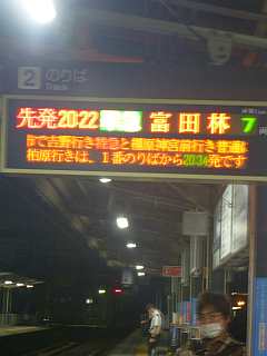 20:22の電車、20:38のバス。