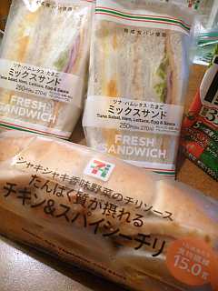 バスの時間が早くて朝食が間に合わないのでコンビニごはん。