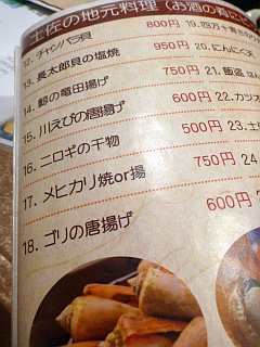 カツオタタキ・ハランボ塩焼き・ウツボ唐揚げ・川エビから揚げ・
