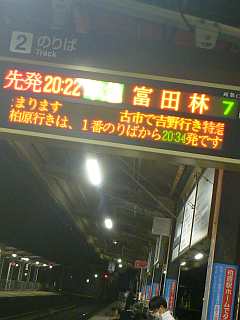 20:22の電車、20:38のバス。