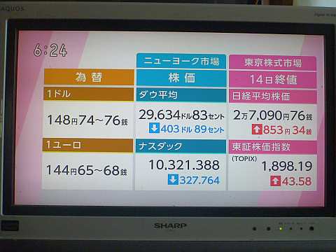 円相場、1ドル148円台後半。