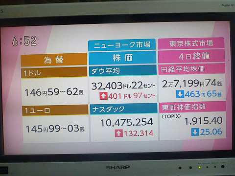 昨日の株価。