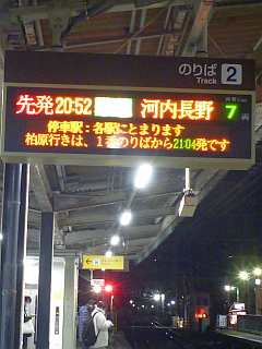 20:52の電車、21:08のバス。