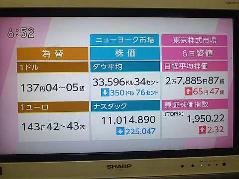 昨日の株価。