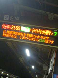 21:52の電車、22:08のバス。