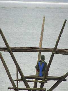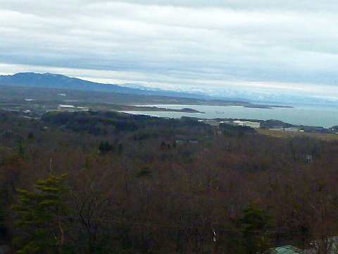 朝のホテルからの景色。小雨が降っています。