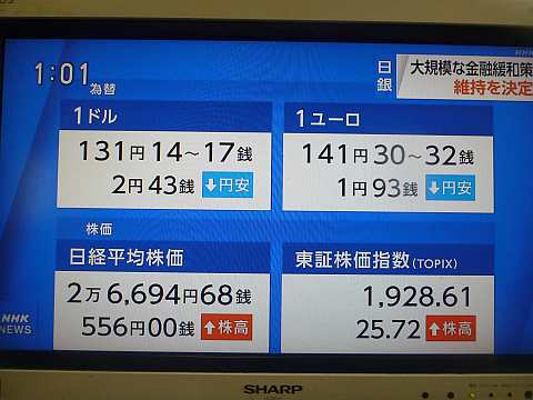 金融緩和策の現状維持を発表したら株価が爆上がり。