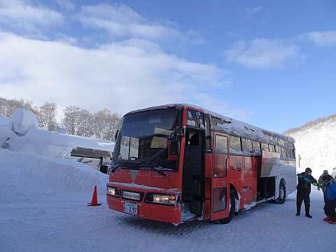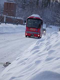 雪が多すぎて20分遅れで運行開始。