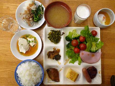 お宿の朝ごはん、バイキングです。