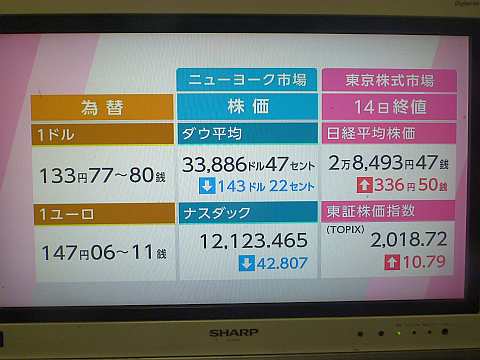 昨日の株価。