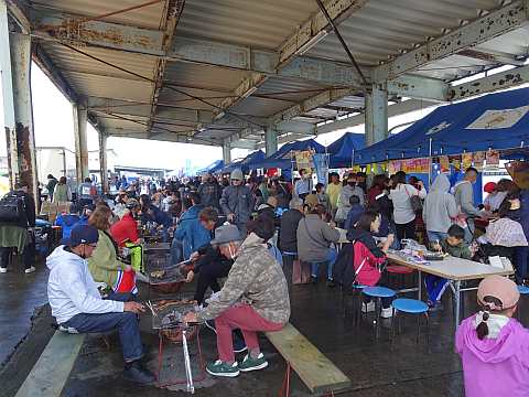 祭りの様子。風がめっちゃ強いです。