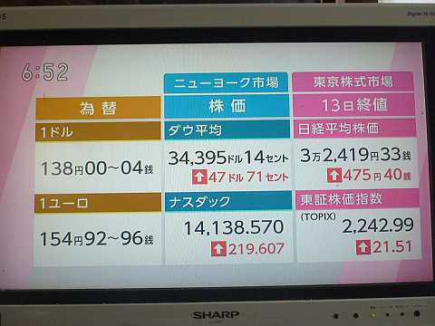 昨日の株価。