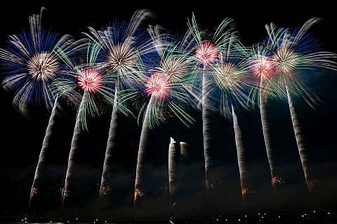 競技花火やワイドスターマインの迫力満点の打ち上げ花火を