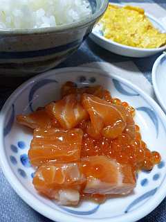イクラにサーモンの刺身を混ぜてみました。美味。