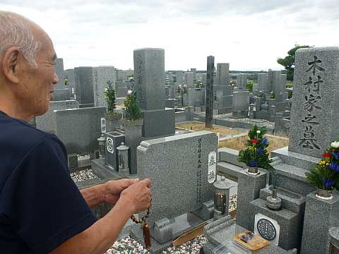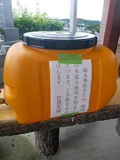秋の墓参り。水道が壊れてて水汲みが大変でした。