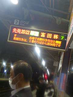 20:22の電車、20:38のバス。