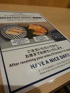 ホテル併設のレストランで朝ごはん。、